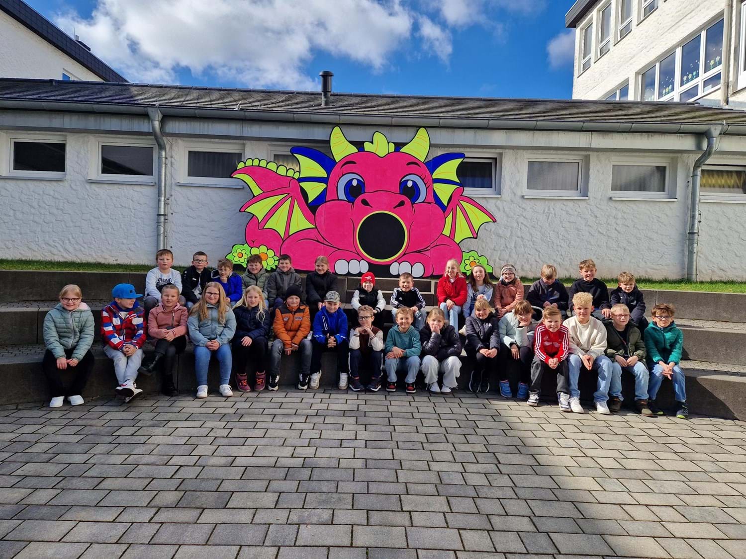 Besonders fleißig waren in den Tagen vor den Osterferien die Drittklässler. Mit viel Liebe zum Detail, bunten Farben und einer großen Portion Kreativität haben sie an einem ganz besonderen Projekt gearbeitet: einem riesengroßen, bezaubernden Drachen!