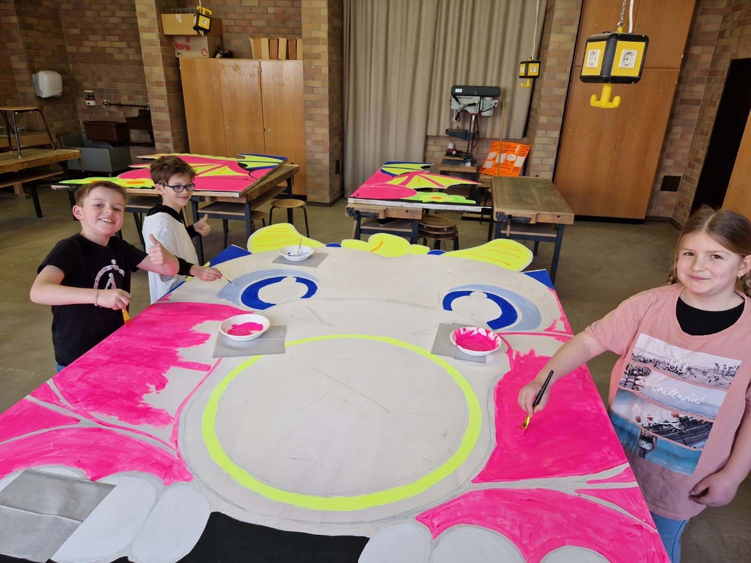 Ab Freitag (24.04.) bis zum 02.05.2026 kann das bunte Kunstwerk bestaunt werden. Die Drittklässler sind schon mächtig stolz und freuen sich sehr darauf, viele Besucher bei ihrem Drachen begrüßen zu dürfen.