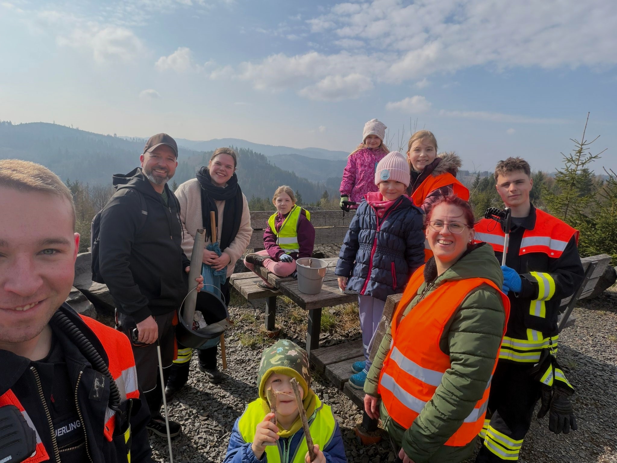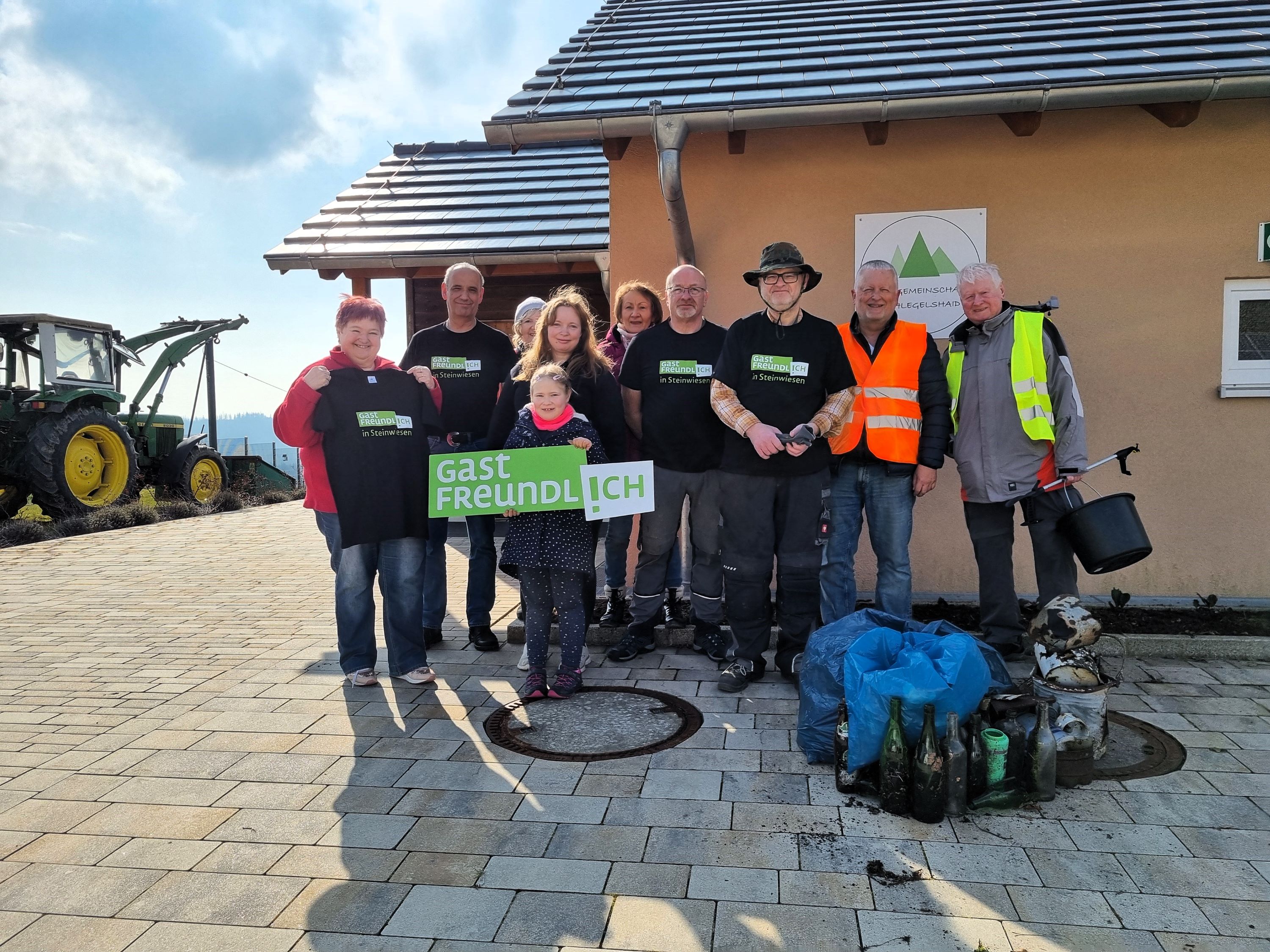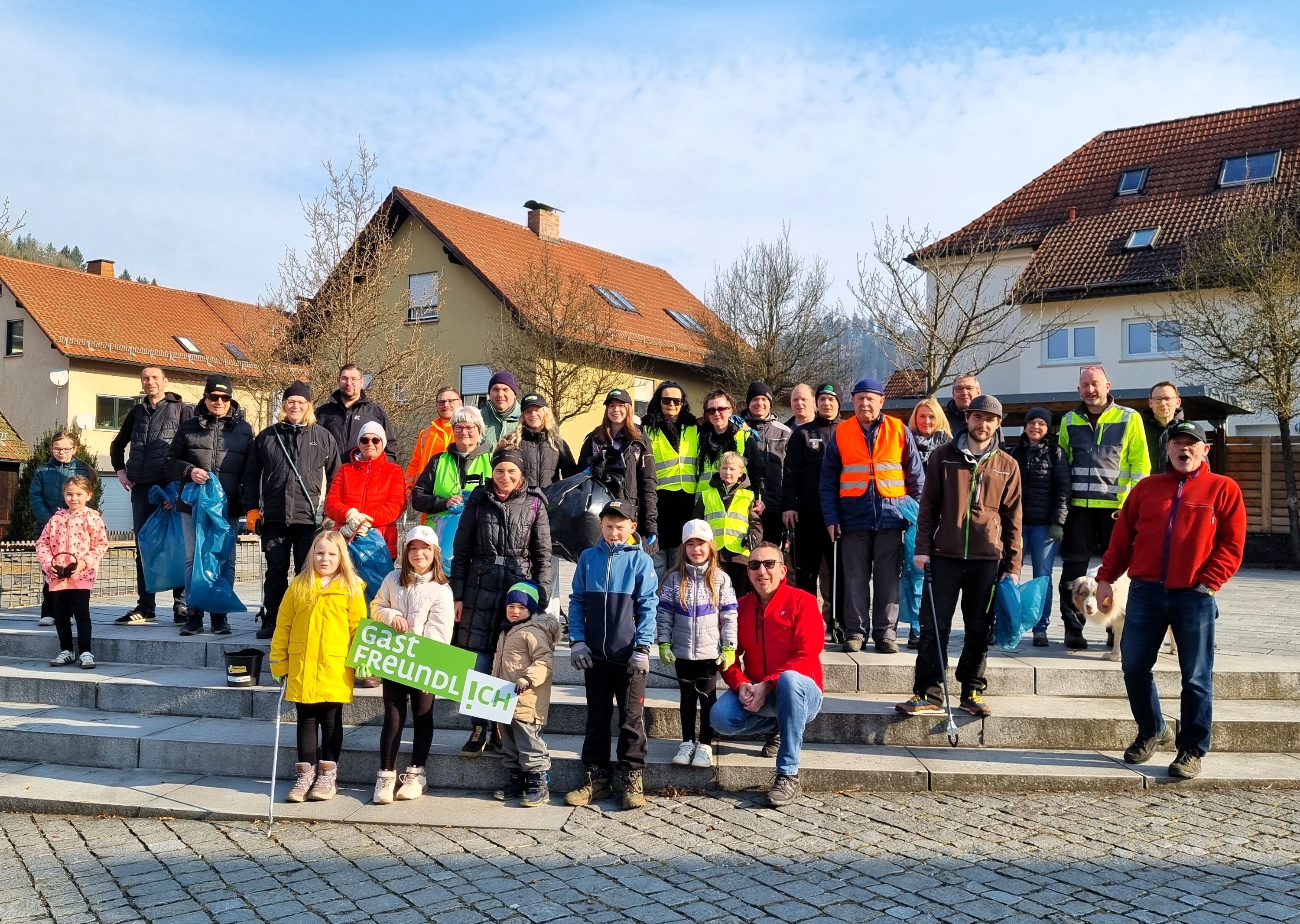 Steinwiesen, sd. Klein und Groß waren dabei und brachten den Ort und die Ortsteile wieder auf Vordermann. 200 engagierte Bürgerinnen und Bürger, darunter Kinder, Jugendliche, Senioren, Vereine, Initiativen und Freiwillige Feuerwehren beteiligten sich bei strahlendem Sonnenschein in allen Ortsteilen und packten tatkräftig an, um die Straßenränder, Gehwege und Grünflächen von Müll und Unrat zu befreien. Besonders erfreulich war das große Engagement der Familien, hier zeigten besonders die Jüngsten ein großes Bewusstsein für Umwelt und Natur. Der Gartenbauverein Steinwiesen um Claudia Wessel kümmerte sich um die Grünflächen um das Tourismushaus und parallel dazu wurde in der Teichmühle ein Osterkranz gebunden und gestaltet, der den Pinguinbrunnen nun verschönert. Sogar die Geocacher-Gemeinschaft mit Andreas Klinger war mit 11 Personen im Einsatz, darunter auch Teilnehmende aus Coburg und von außerhalb des Landkreises. Der neu gewählte Bürgermeister Sven Schuster war ebenfalls zur Stelle und unterstützte am Tourismushaus, somit führt er die Arbeit von Gerhard Wunder fort, der immer mit von der Partie ist.
