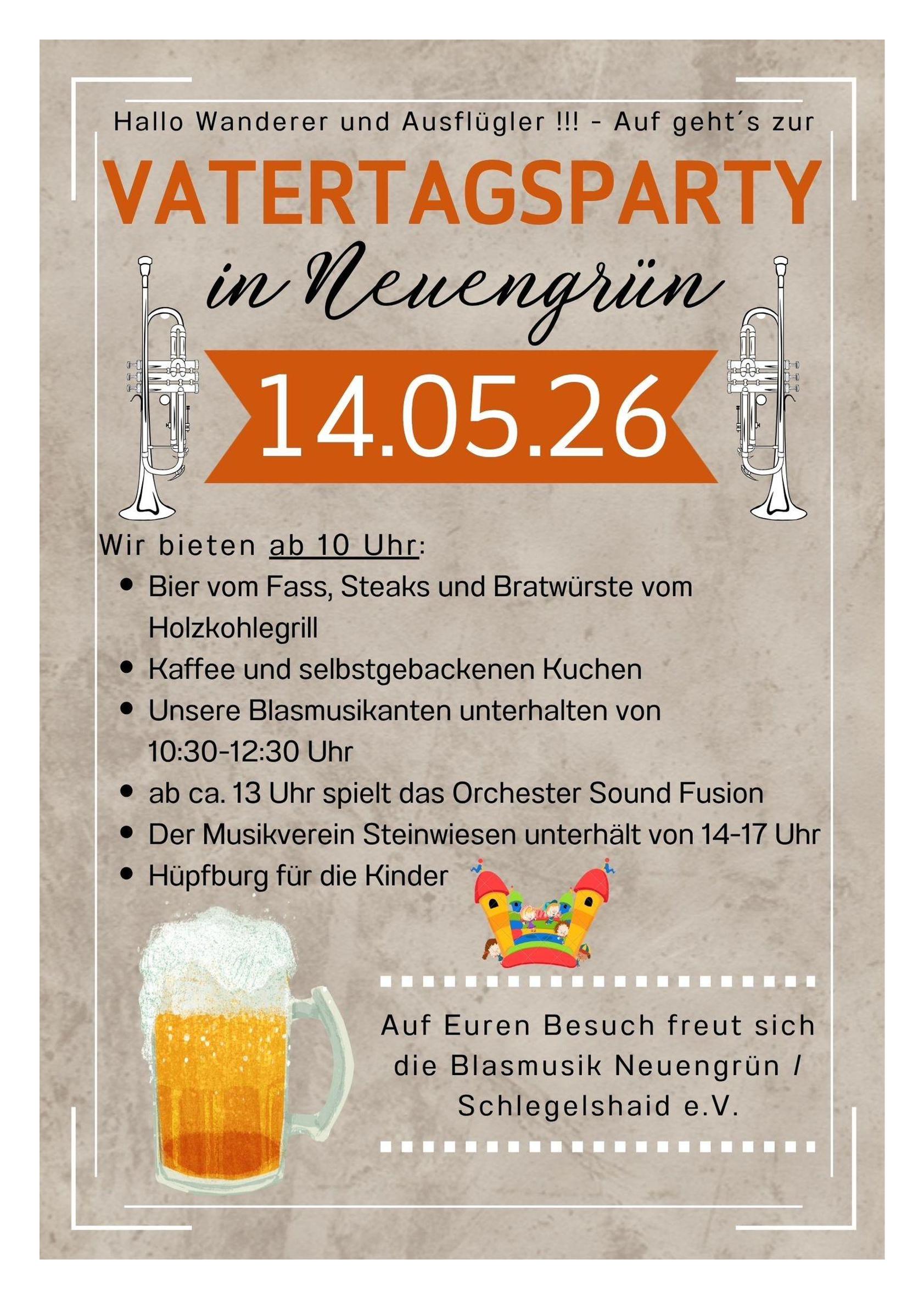 4. Vatertagsparty der Blasmusik Neuengrün/Schlegelshaid, 14.05.2026
